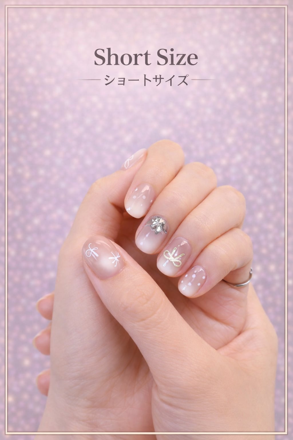 とろけるようなうるベージュのグラデーションが、指先に自然な透明感をプラス。 薬指のビジューがさりげない華やかさを添えて、大人の女性らしさを引き立てます。 シーンを問わず使える、王道のナチュラルデザインです。 【サイズ】 お客様の爪のサイズに合わせて、XSからLまでの幅広いサイズをご用意しております。 ※爪の幅のサイズ(mm)を表記しております。 XS サイズ 親指:14 人差し指:10 中指:11 薬指 :10 小指:7 S サイズ 親指:15 人差し指:11 中指:12 薬指: 11 小指: 8 M サイズ 親指:16 人差し指:12 中指:13 薬指:12 小指: 9 L サイズ 親指:17 人差し指:13 中指: 14 薬指:13 小指:10 【必読】ご購入前にご確認ください。 https://x.gd/14DKj
