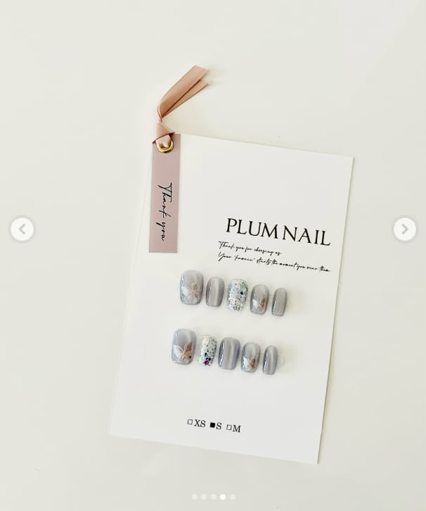 【立体バタフライ×シルバーラインネイルチップ】 ホワイト×シルバーの洗練デザインに、立体バタフライとパール&グリッターをプラス。 シンプルながら存在感のある、大人可愛いネイルチップが登場! 【PLUMプラムのネイルチップ】 サロン級のデザインが、たった10分で完成! 粘着シールで簡単装着&約2週間長持ち。忙しくても手軽におしゃれが楽しめます。 グラデーション、ラメ、マーブルなど豊富なデザインで、 日常にもイベントにもぴったりな1枚がきっと見つかる。 5,000円以上のご購入で送料無料! 【サイズ】 お客様の爪のサイズに合わせて、XSからLまでの幅広いサイズをご用意しております。 ※爪の幅のサイズ(mm)を表記しております。 XS サイズ 親指:14 人差し指:10 中指:11 薬指 :10 小指:7 S サイズ 親指:15 人差し指:11 中指:12 薬指: 11 小指: 8 M サイズ 親指:16 人差し指:12 中指:13 薬指:12 小指: 9 L サイズ 親指:17 人差し指:13 中指: 14 薬指:13 小指:10 【必読】ご購入前にご確認ください。 https://x.gd/14DKj