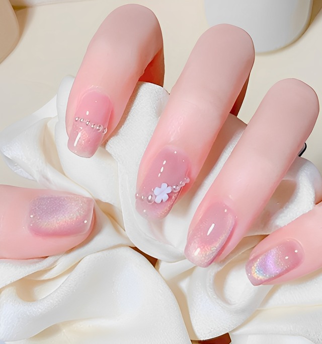 ショートサイズの光沢ピンクパールネイル・ロングサイズ ガーリーなイメージのショートネイルチップで花とラインストーンがあしらわれた大人可愛いネイルチップ! 簡単に装着可能!普段はネイルをしない人にもおすすめ。 指先がピンクベースで自然に明るくなることで、手全体の光沢感がアップ。 自撮りでも、指先から自発光しているように見えるのもおすすめポイント! ネイルチップのプロが厳選しているから、プチプラで装着簡単、初心者から上級者まで迷わず買ってOK。 新作が出るたびにネイルで指先のおしゃれを楽しめる♪ 【サイズ】 1箱約24枚入り、12種類のサイズ展開がご用意あります。 【必読】ご購入前にご確認ください。 https://x.gd/14DKj