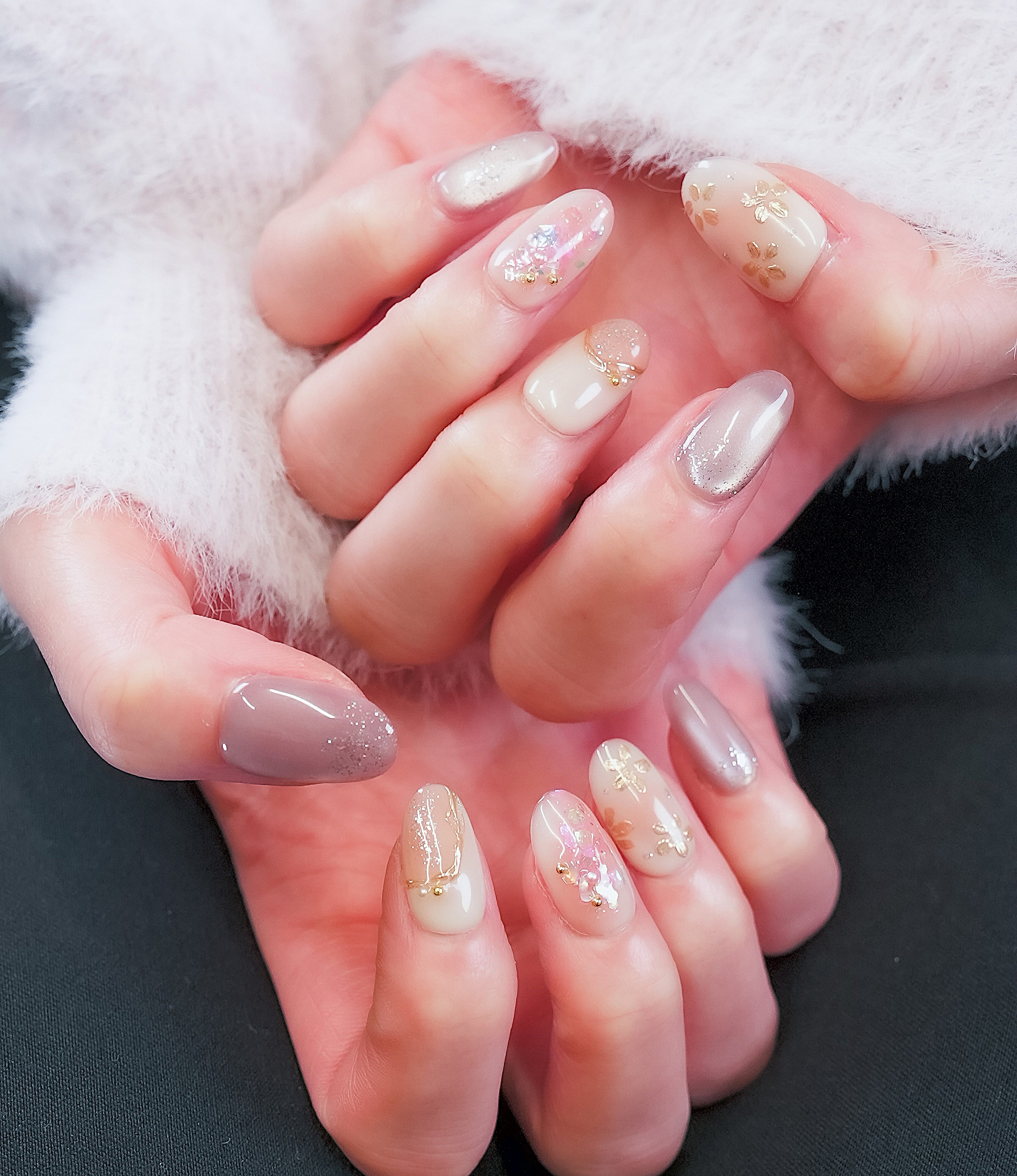 ゴールド花×シェル輝き|褒められネイル[PM060]