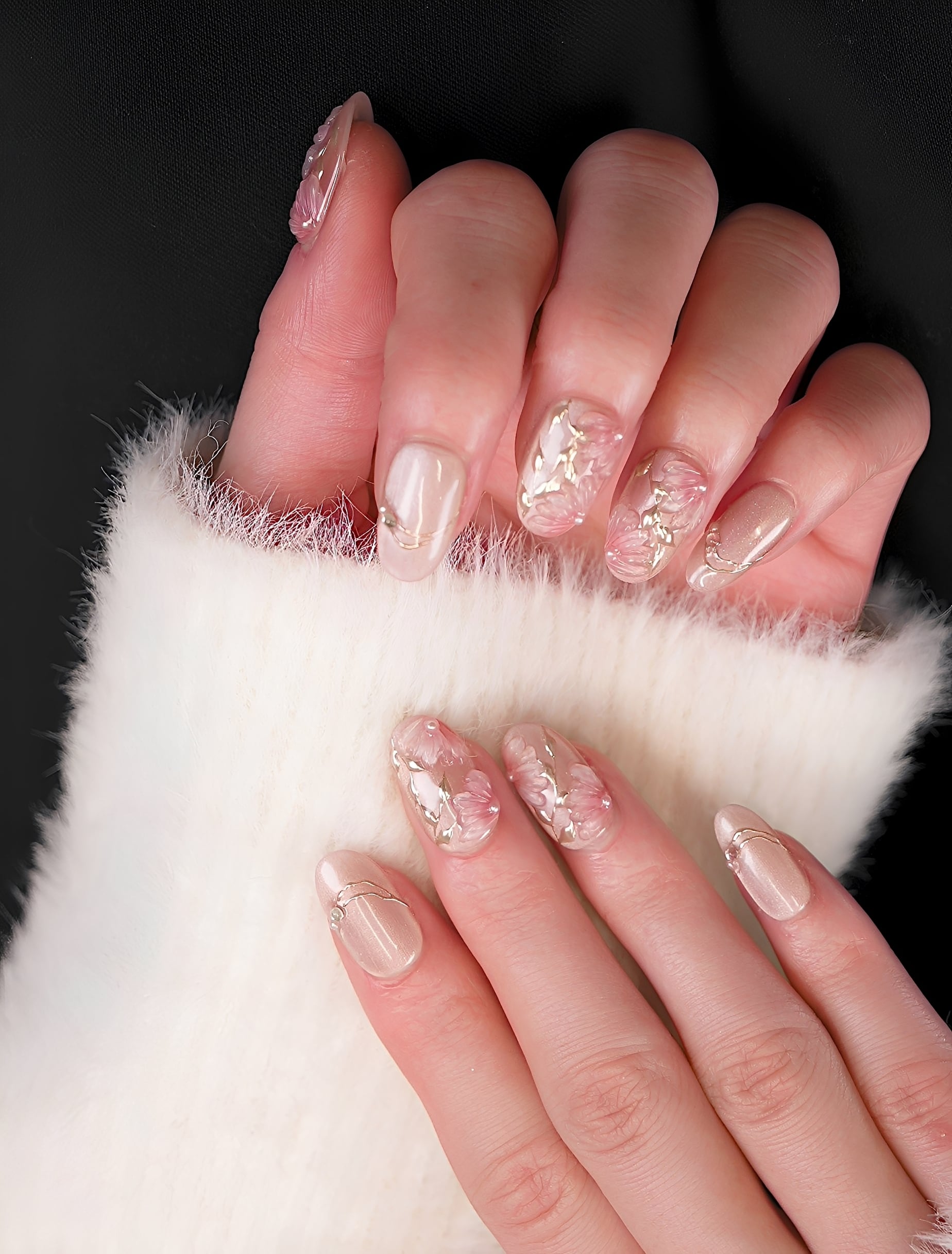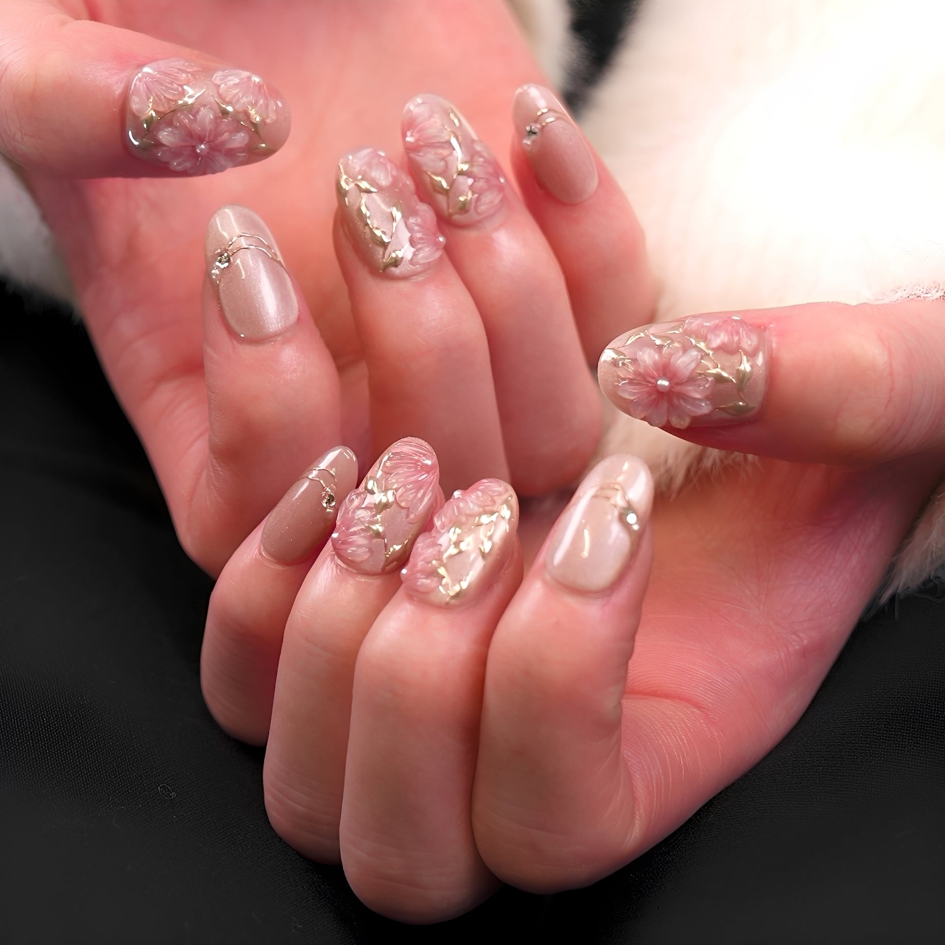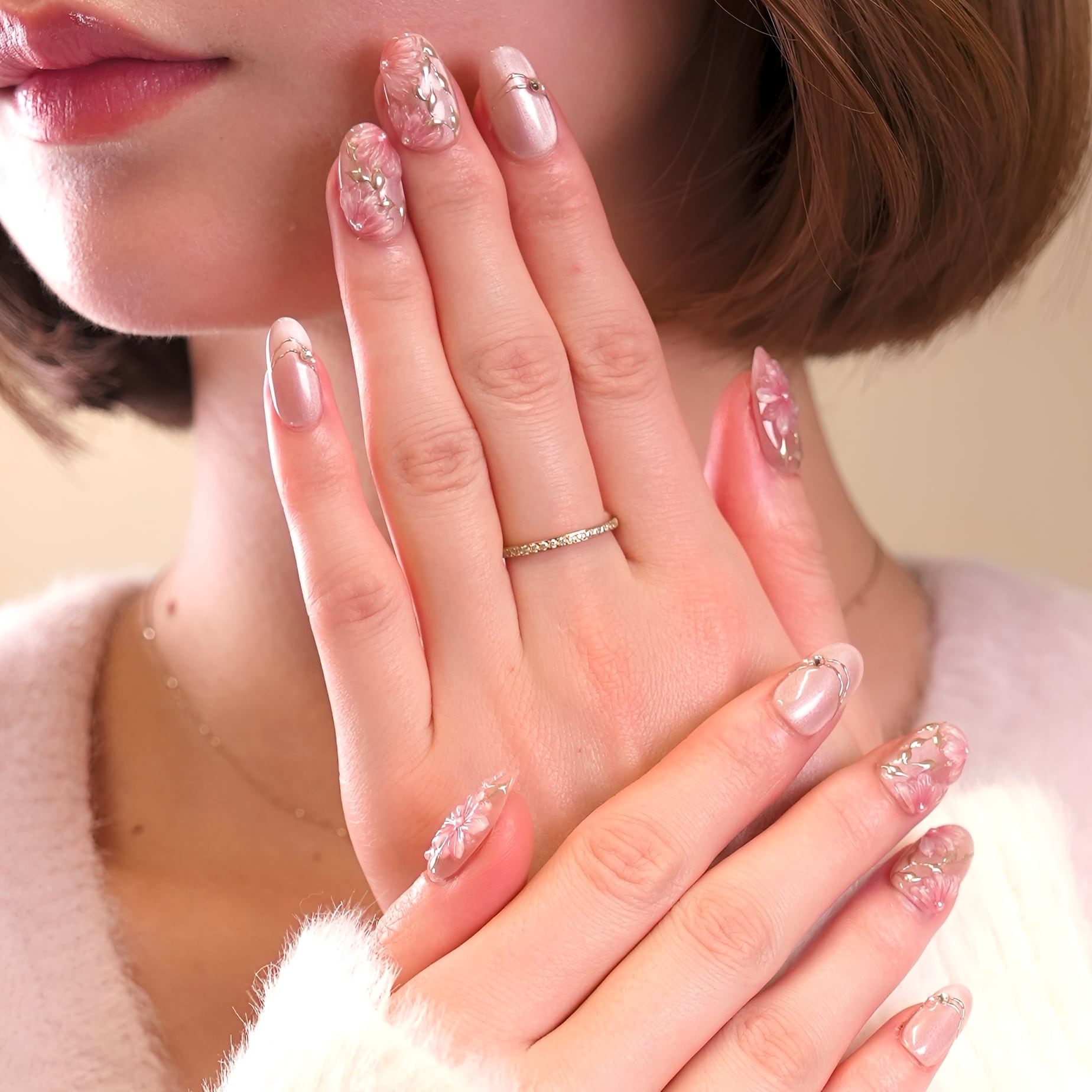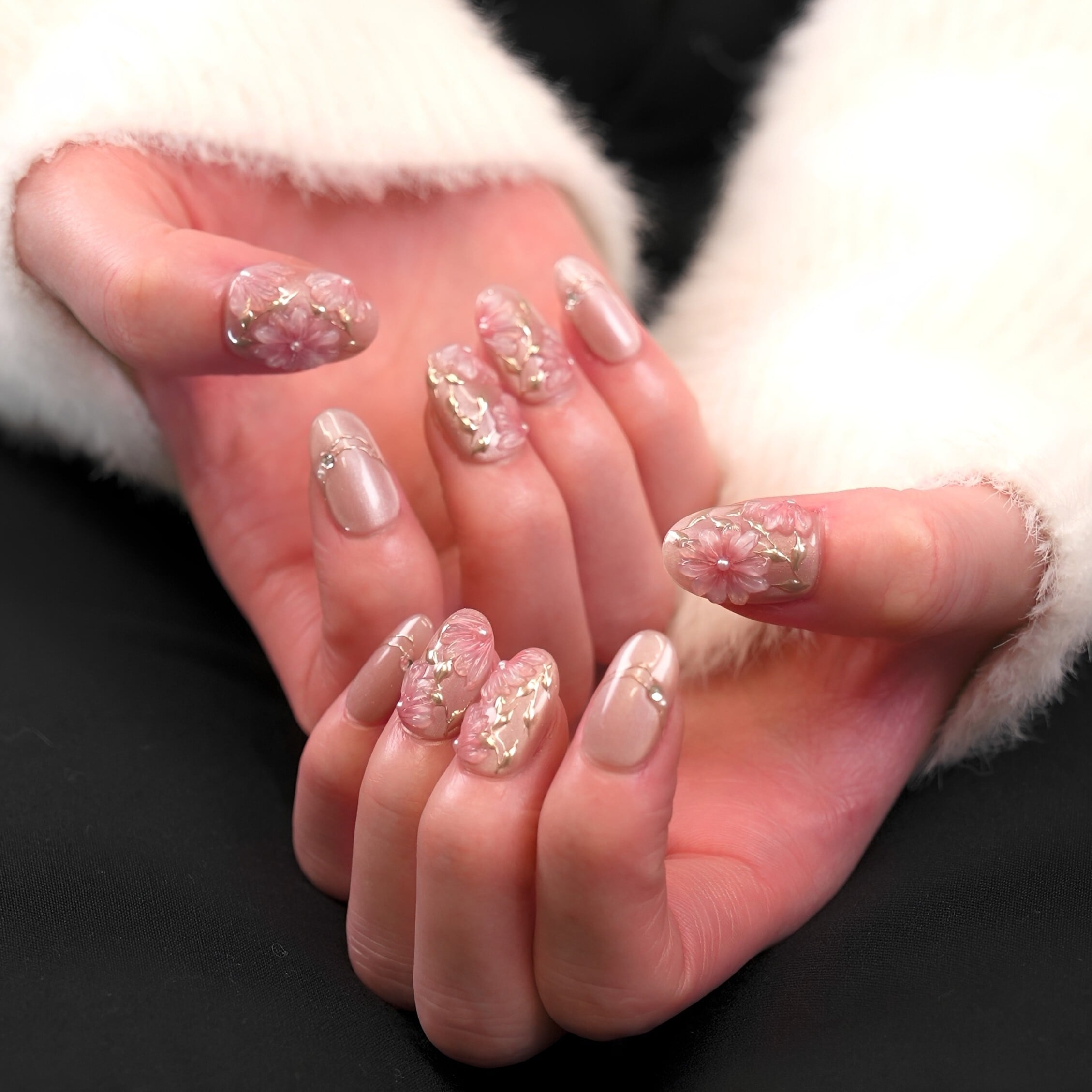 桜ピンク×立体フラワー|春の上品フラワーネイルチップ[PM064]