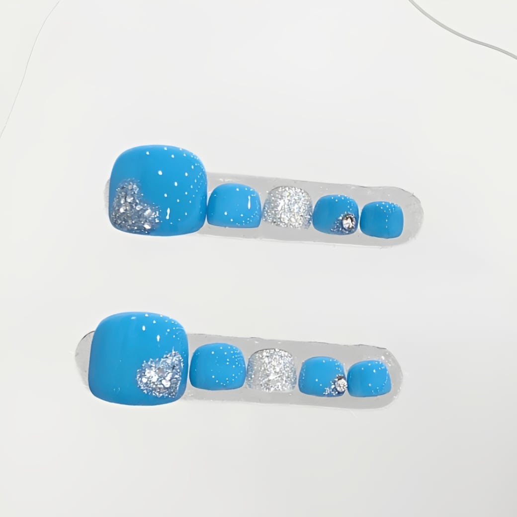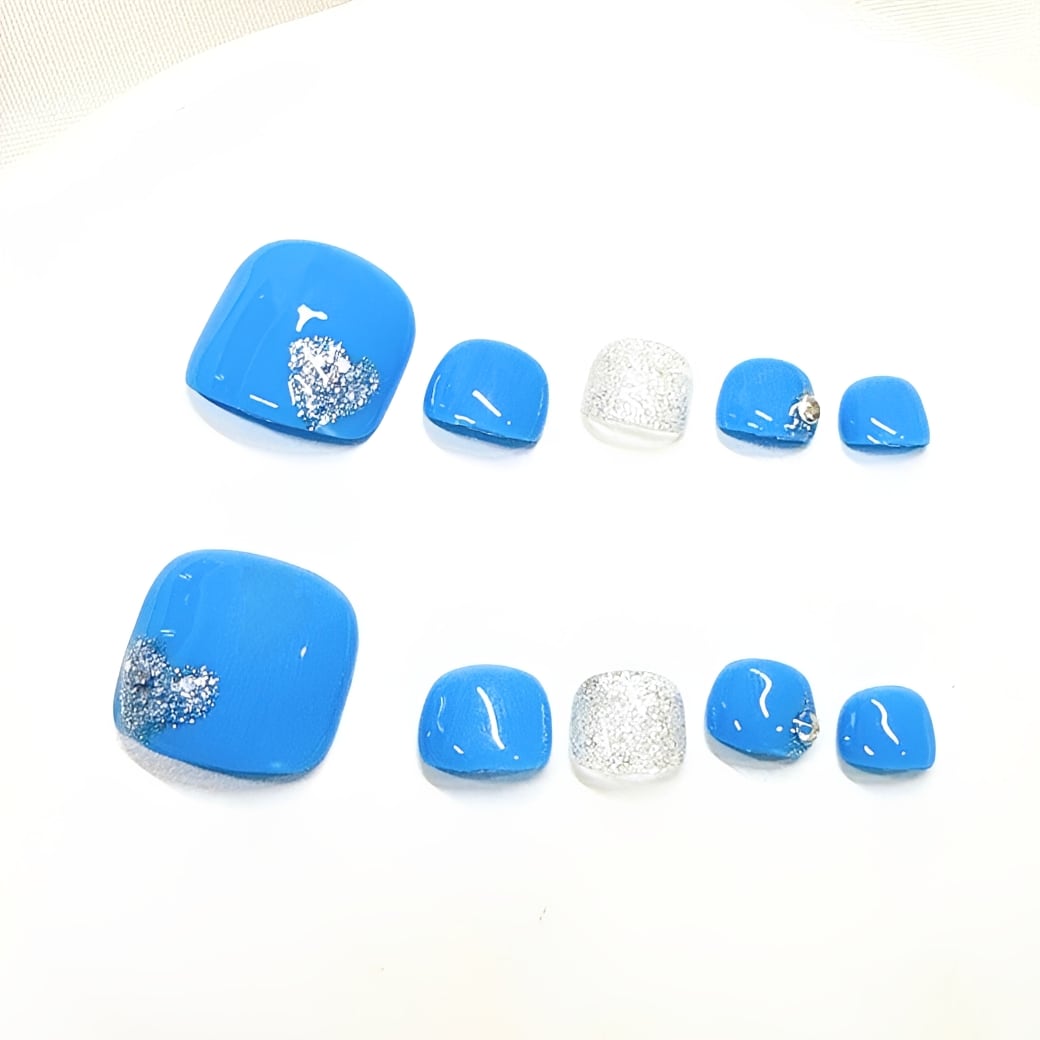 フットネイル|ターコイズブルー×シルバーラメ[FF-004]