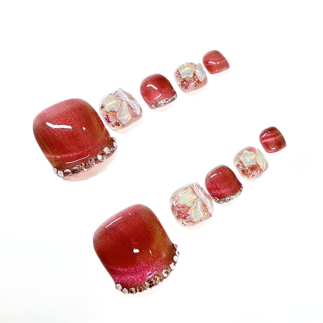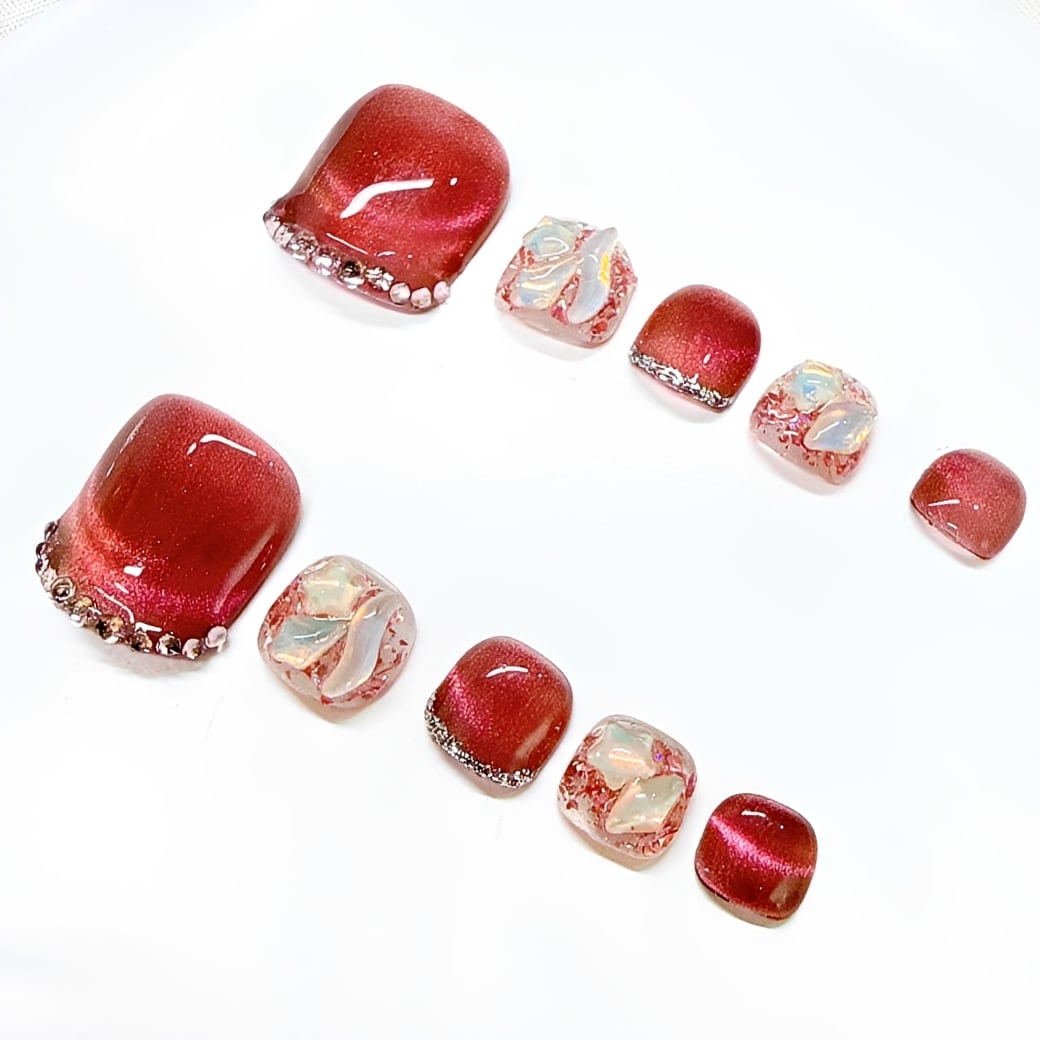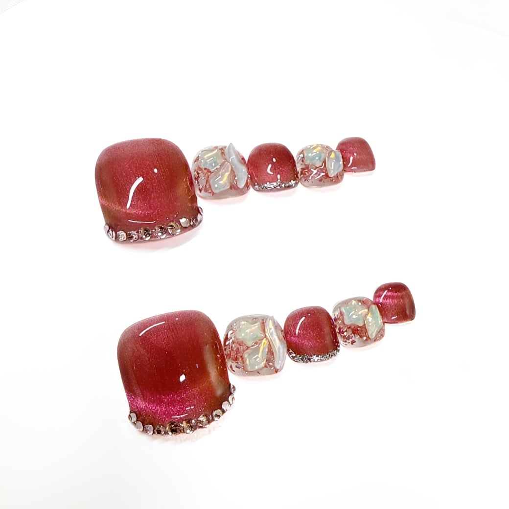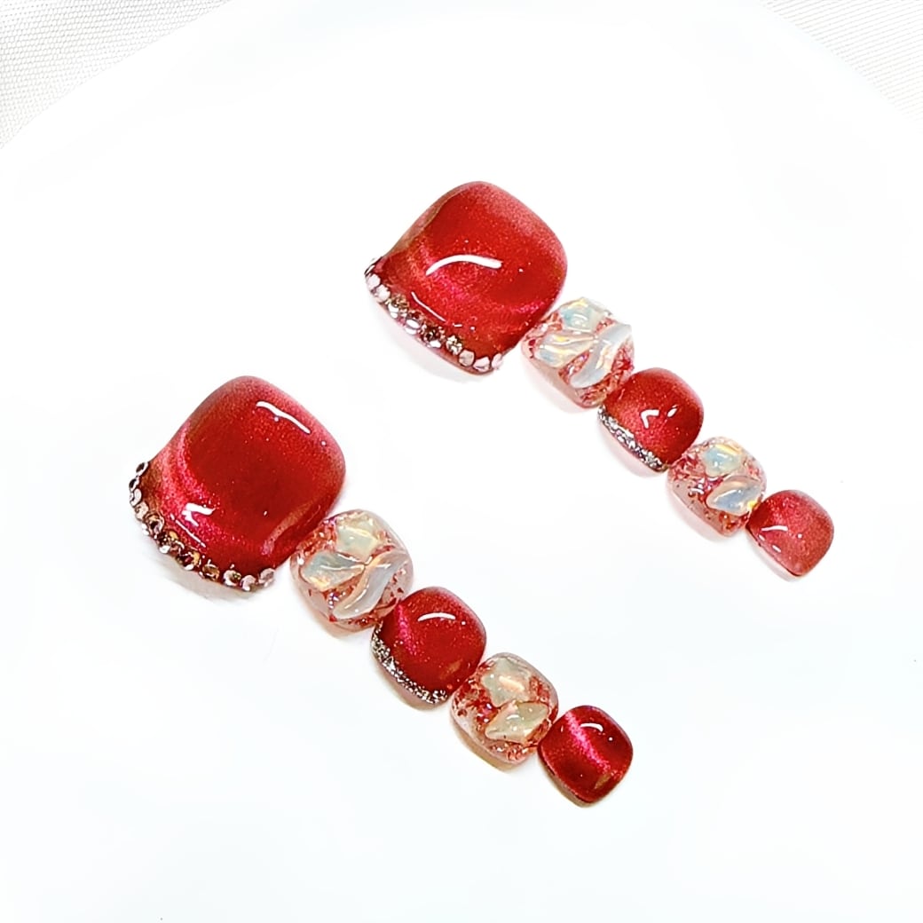 フットネイル|ルビーレッド×シェルビジュー[FF-007]