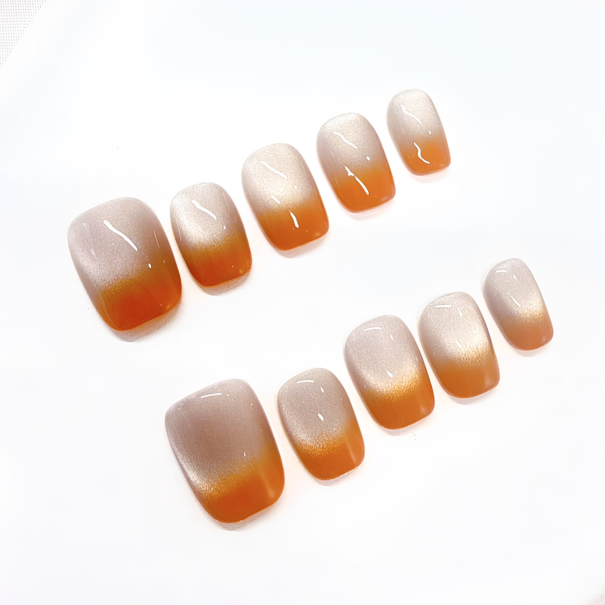 やわらかなヌーディーカラーから、ほんのり色づくオレンジへのグラデーションが、指先を自然に美しく見せてくれるデザイン。